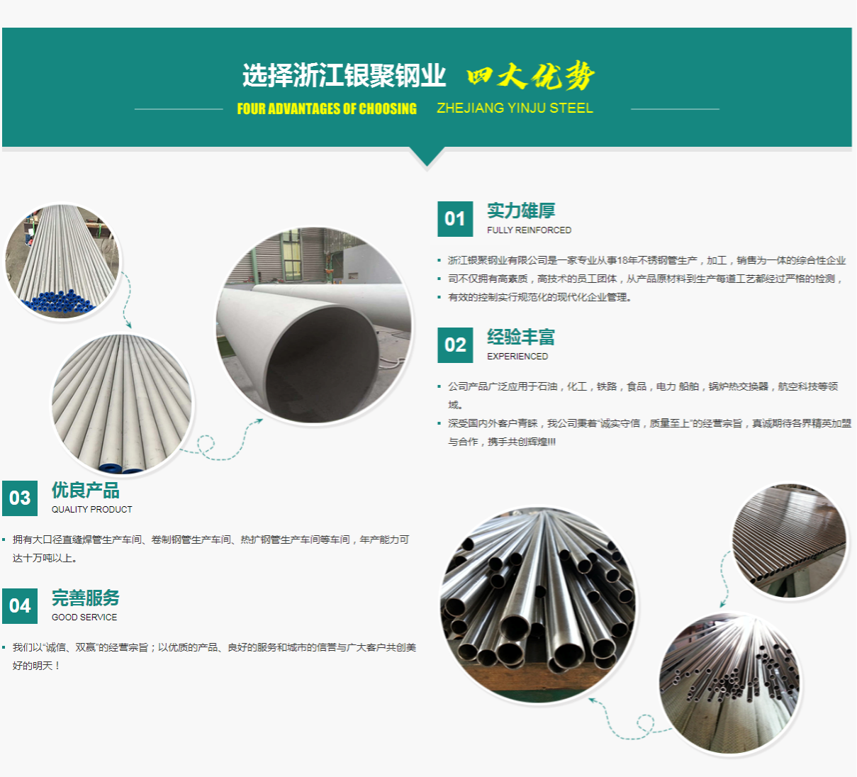Copyright @ 浙江銀聚鋼業(yè)有限公司-不銹鋼管廠家 版權所有 | 單位地址:浙江省溫州市龍灣區(qū)永中街道 生產基地:浙江省麗水市龍泉市塔石鎮金崗工業(yè)園區(qū) 浙ICP備2021034082號-8